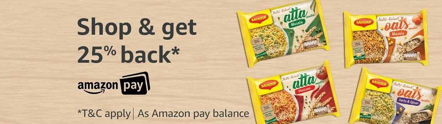 • The order should be: (a) for products from the Maggi Nutralicious range; (b) for maximum two units per product; © placed only using Amazon Pay balance on Amazon.in website or mobile application thereof, for you to be eligible for the offer.